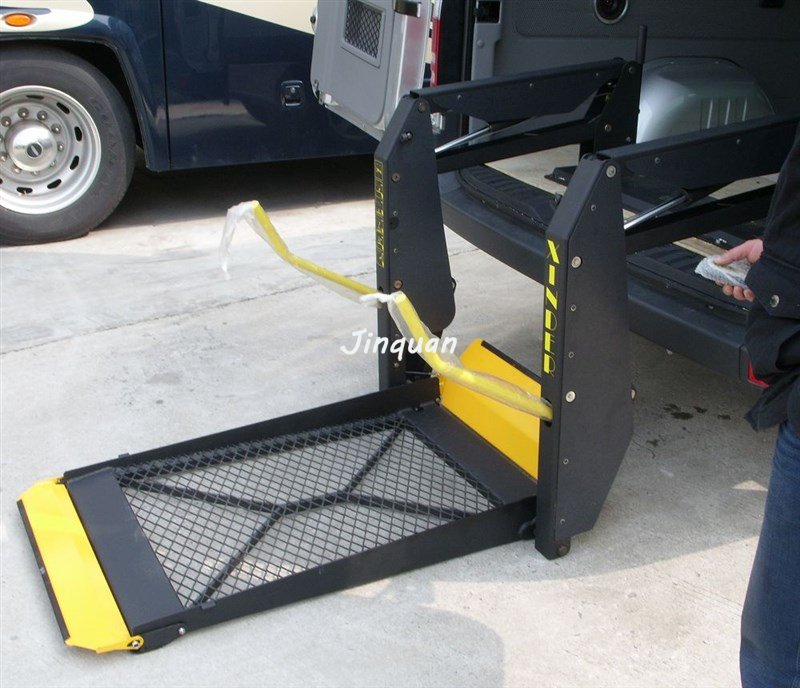 商務(wù)車載型無障礙升降平臺m.fangyuanjx.com.cn采用鋼結(jié)構(gòu)平行四邊形結(jié)構(gòu),液壓驅(qū)動,安裝于汽車尾部提供殘疾人輪椅車上下汽車的專用提升平臺,平臺前后各裝有安全翻板以防輪椅車在提升過程中滑落,平臺設(shè)有控制面板便于使用者方便操作,在汽車內(nèi)部裝有手動控制手柄,在升降平臺斷電或電控故障時通過手柄人工機(jī)械操作平臺升降,使用后平臺可旋轉(zhuǎn)放置,不占空間。
