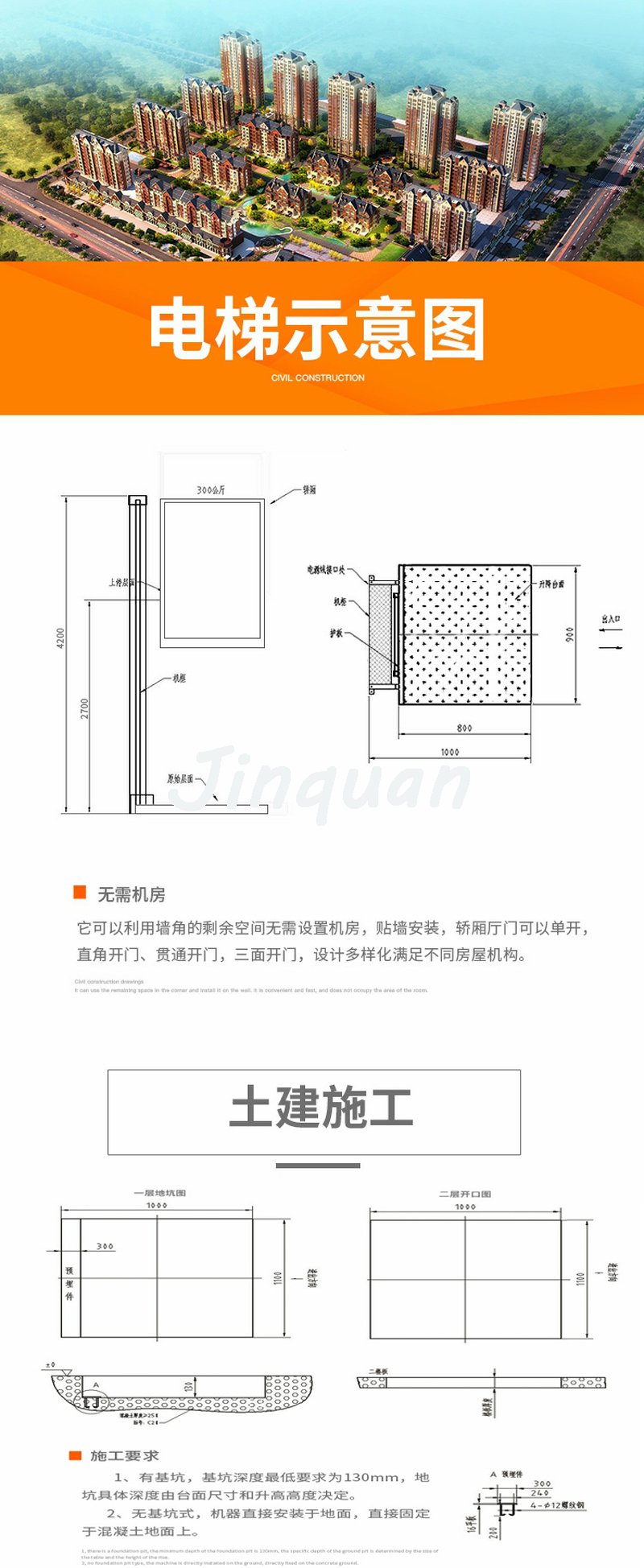家用電梯采用液壓傳動,所以運行非常平穩。其液壓系統攜帶防爆閥,故障時可控制下降速度;另外,采用高強度鏈條牽引電梯上下,另附加鋼絲繩防止墜落,從而保證電梯的安全運行。