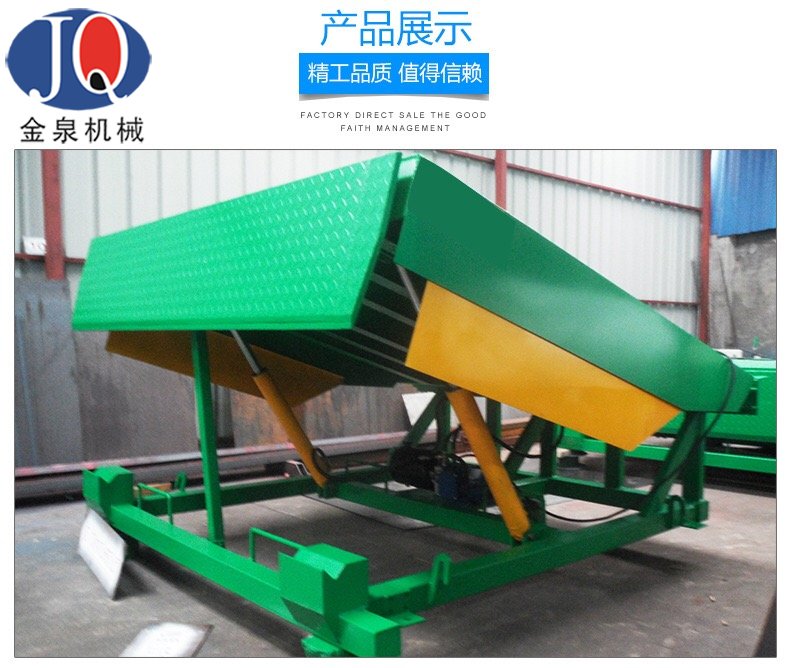 固定液壓登車橋是用于叉車與貨車之間的搭橋設備,方便裝卸貨物。液壓登車橋在現代物流現場已是一非常易見的結構 形式。它是企業物流鏈的起點與終點,是企業快速、安全周轉產品及貨物的一個裝卸貨操作平臺。 裝卸貨操作平臺的高度固定,但來往運輸車廂的廂地高度不一,運輸車輛與裝卸貨站臺之間總是形成一定的高度落差或間隙。造成搬運叉車不能進出運輸車輛直接裝卸貨物。運用登車橋提供可靠的連接。使搬運叉車能夠安全、快速地進出運輸車輛進行裝卸貨作業。