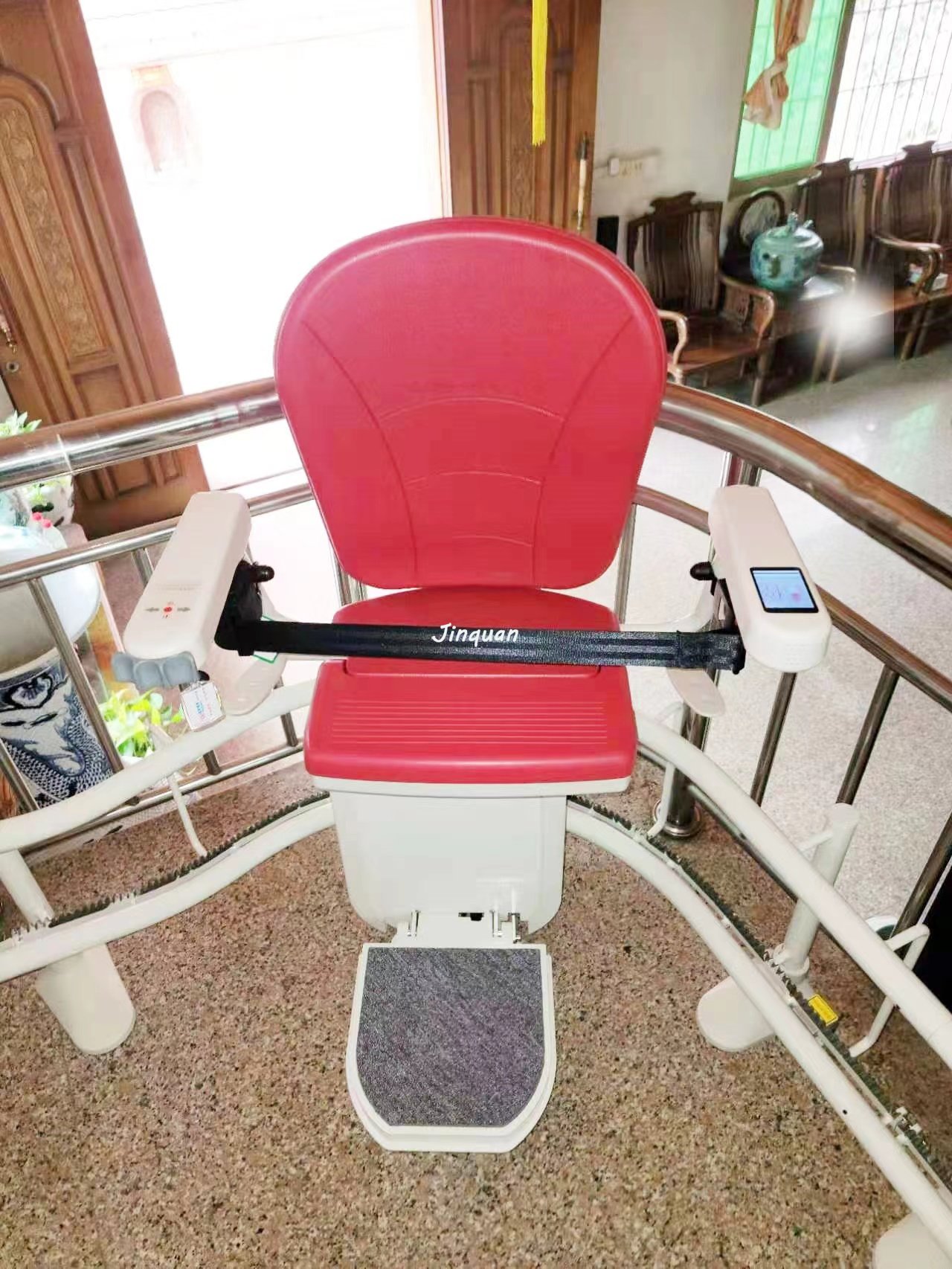 在歐美一些地區的房屋設計一般在內部結構上有階梯,但很多房屋沒有安裝電梯的空間。為了讓移動不便的人能輕松上樓,我們推出了可以安裝在樓梯上的電梯。座椅電梯是安裝在樓梯側運行的簡易電梯。主要作用是幫助腿和行動不便的人上樓。座椅電梯的結構一般由軌道、驅動裝置和座位三部分組成,驅動裝置和座位安裝在一起,因此外觀上看起來像在軌道上運行的椅子。人們認為只有老人才需要使用這樣的座椅電梯,其實這個想法具有片面性?,F在社會上有很多人有脊髓病、關節炎、其他骨骼病等引起的行動障礙,醫生建議使用座椅電梯上樓梯以減少對身體的傷害。坐座椅電梯很方便,放下座位坐下,按扶手上的按鈕,座位就開始移動了。工作緩慢順暢,非常順暢。把手從按鈕上拿開,座椅馬上停止運轉。再按一次按鈕就可以繼續走了。另外安全性也有保障。人坐在椅子上用安全帶保護著。避免掉下去。座位遇到障礙物時自動停止,即使行駛途中停電也不用擔心會影響安全。驅動電源是可反復充電的電池,足以把客戶送到安全的地面。曲線座椅電梯曲線型座椅電梯很難下別墅、舊辦公室等樓梯。優雅的設計,多種顏色的選項,產品和你家的裝修風格一體化,多種風格的選項更節約你的空間,更方便使用。直線型座椅電梯只要安裝在一個直線樓梯上,就可以使用直線型座椅電梯,可以更經濟,生活更簡單,更開心。單軌座椅電梯,簡單的大氣外觀設計,全面溫柔的細節處理只是為了追求完美,選擇折疊式軌道,簡單解決房間布局和安裝位置的沖突,生活方便。座椅電梯是用復式建筑、別墅、舊建筑改造解決老年人,行為不便的人下樓的好方案,真的讓你的生活變得更簡單,更快樂。
